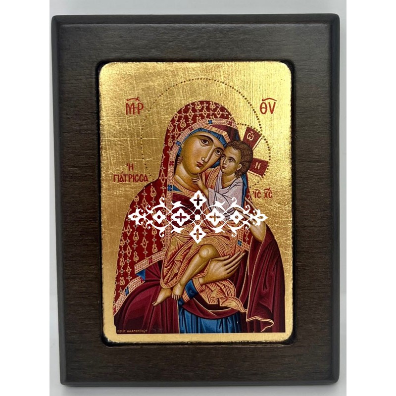 ► Εικόνα της Παναγίας Γιάτρισσας ξύλινη σκαφτή με μεταξοτυπία όπου αγιογραφικά φύλλα χρυσού εφαρμόζονται λεπτομερώς για να διακοσμήσουν το φόντο της. Κατά την τελική επεξεργασία, λουστράρεται με ειδικό βερνίκι για να διατηρεί τη λάμψη της. ► Πάχος ξύλου 2cm. ► Επιλέγοντας τη διάσταση της εικόνας [δεξιά] εμφανίζεται και η αντίστοιχη τιμή. ►Η παράδοση των προϊόντων πραγματοποιείται εντός 3 εργάσιμων ημερών. |