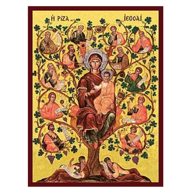 Η παράσταση πήρε αυτή την ονομασία διότι η Υπεραγία Θεοτόκος κατάγεται από το γένος του Ιεσσαί, πατέρα του Δαυίδ. Η Θεοτόκος παρουσιάζεται ένθρονος και γύρω της έχοντας στην αγκαλιά της τον Ιησού Χριστό και γύρω της απλώνονται κλαδιά δέντρου. Πάνω σε αυτά παρουσιάζονται οι προφήτες που είχαν προφητεύσει στην Παλαιά Διαθήκη, ενώ στη βάση του δέντρου αναπαύεται ο Ιεσσαί.